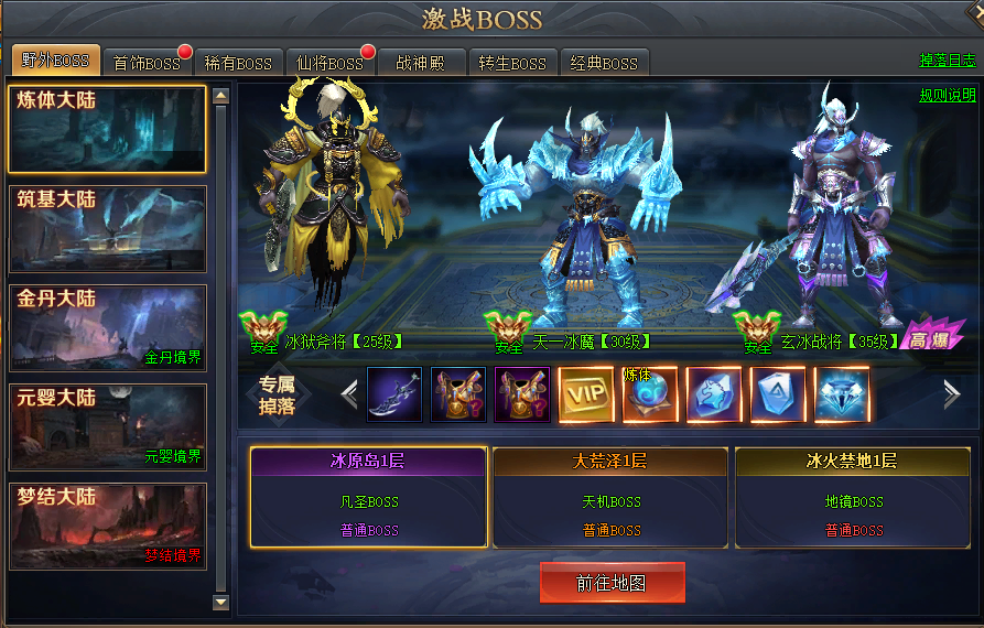 ② 每个大陆共3张地图,每张地图掉率倍率不同,玩家可自由选择不同的地图挂机