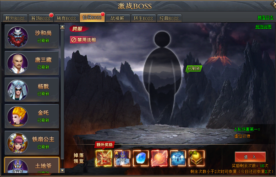 ② 第一层是本服的BOSS,后面都是跨服BOSS,法相不能进入